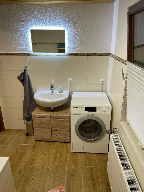 Diese Wohnung ist für Familien mit kleineren Kinder besonders geeignet. Im Dachgeschoss gibt es ein Kinderzimmer, wo die Kleinen ungestört spielen können. Sie können eigene Spielsachen mitbringen oder die vorhandenen benutzen. So sind auch einmal Regentage leicht zu überbrücken. Die Wohnung liegt in der 1. Etage und reicht bis zum Dachgeschoss. Zur Ausstattung gehören Waschmaschine, Hochstuhl, Kinderbett, Spülmaschine, Backofen mit Umluft, Mikrowelle, Spül-, Wasch- und Brotschneidemaschine.
